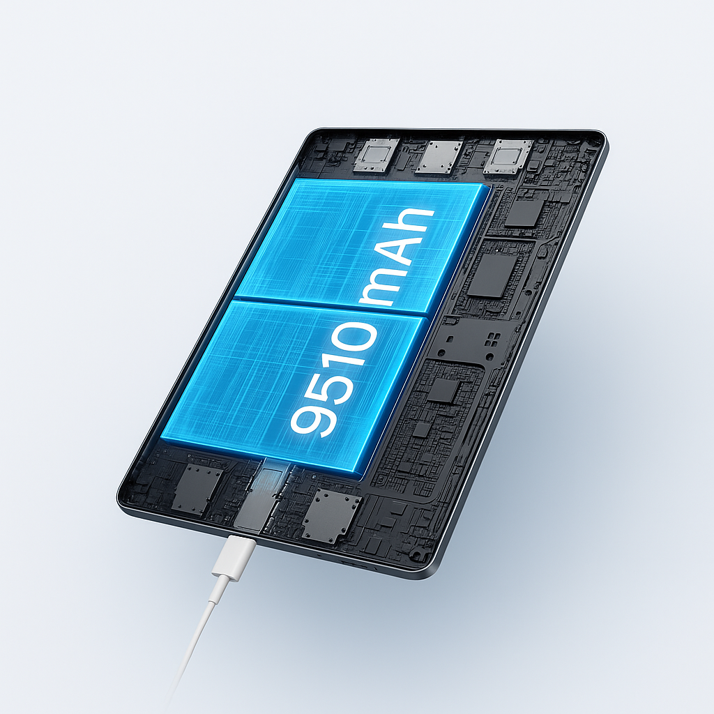 La batterie de 9510 mAh vous accompagne toute la journée. Travail, vidéos ou jeux : profitez de jusqu’à 12 heures d’utilisation continue, avec une recharge rapide de 67W qui atteint 100% en un peu plus d’une heure.